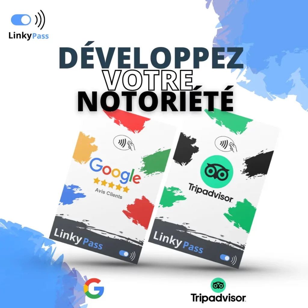 Chez LinkyPass™, nous sommes des experts en gestion de la réputation en ligne. Notre mission est de vous aider à briller sur le web en créant des cartes d’avis personnalisées, en automatisant la collecte d’avis et en vous fournissant des stratégies de réputation efficaces. Faites confiance à notre équipe dévouée pour optimiser votre présence en ligne et renforcer la confiance de vos clients. Contactez-nous dès aujourd’hui pour commencer à façonner une réputation en ligne exceptionnelle.